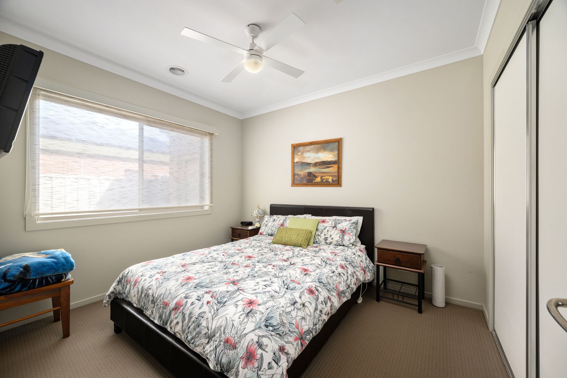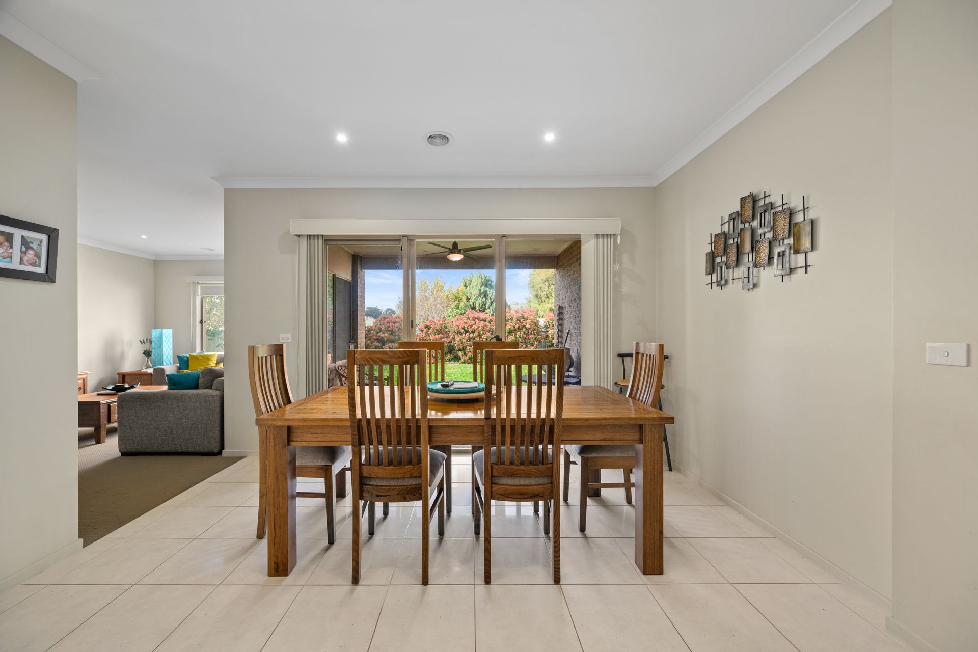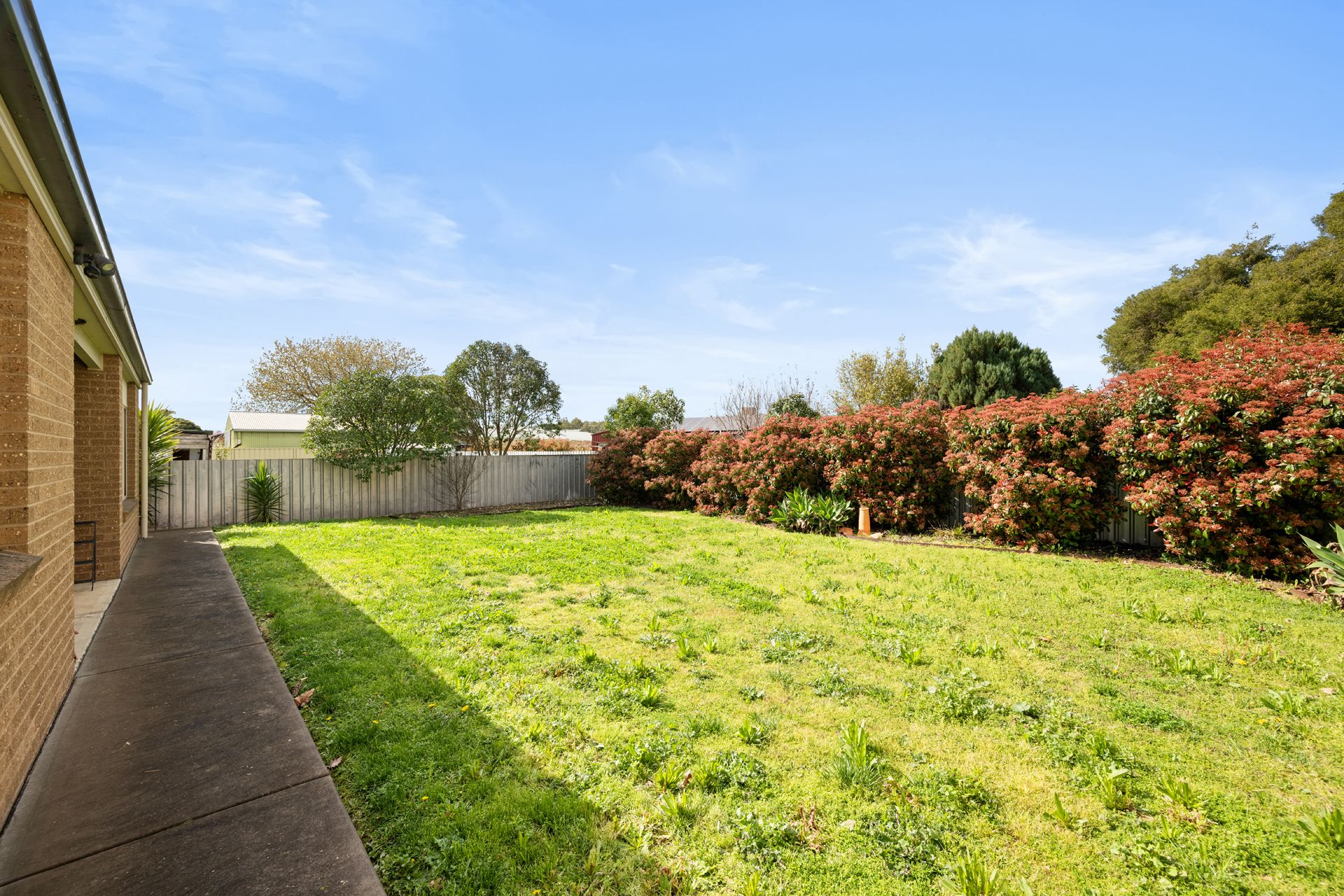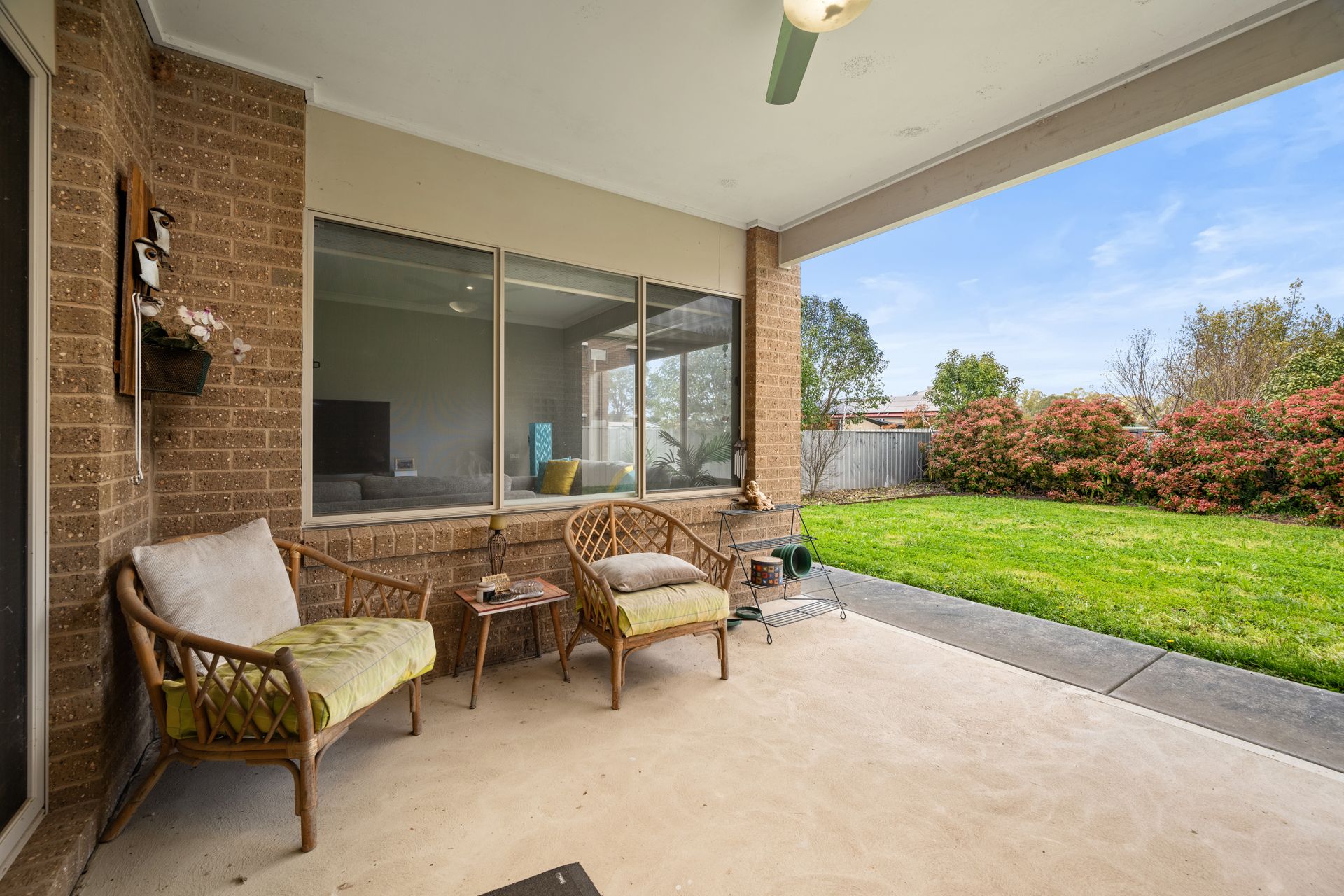 Step outside to enjoy the undercover alfresco area, complete with a ceiling fan — perfect for warm summer evenings. The low-maintenance garden features neat lawns and established shrubs along the fenceline, offering both privacy and greenery.