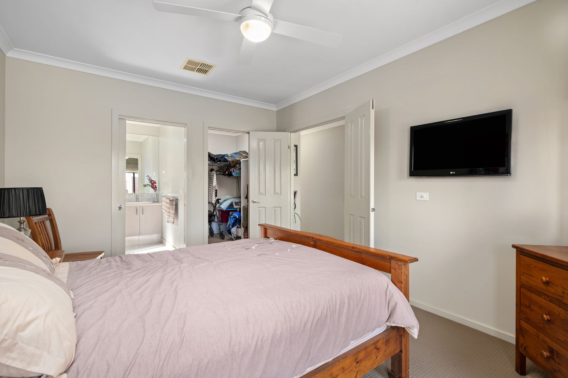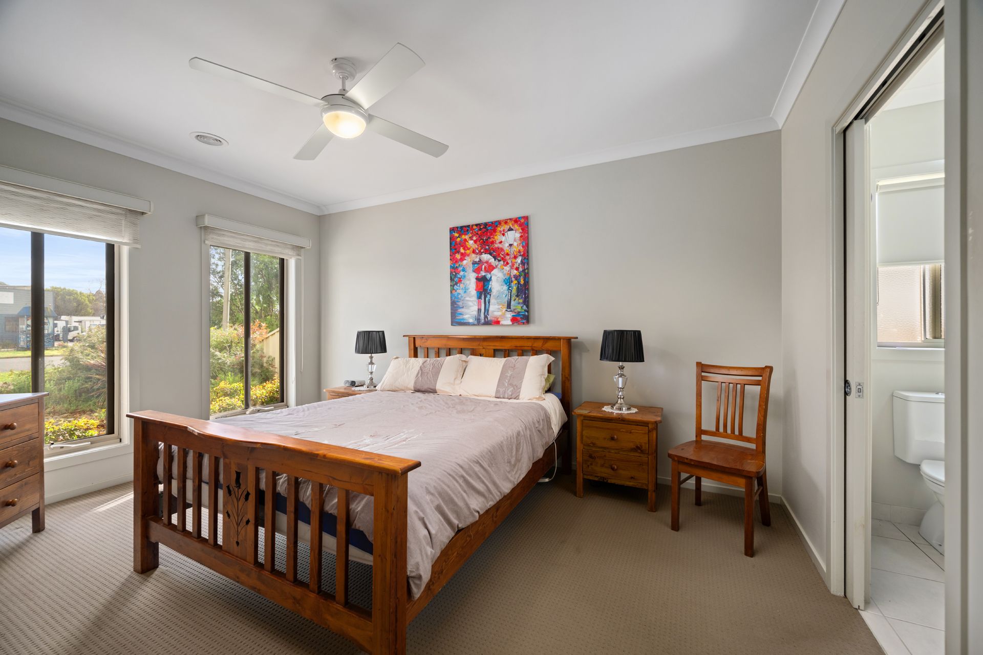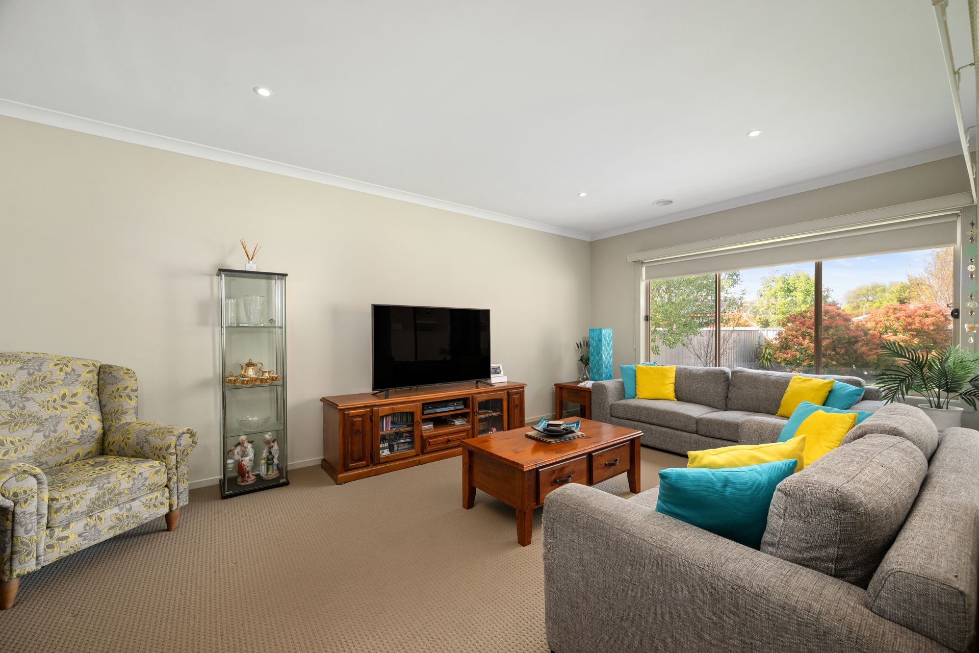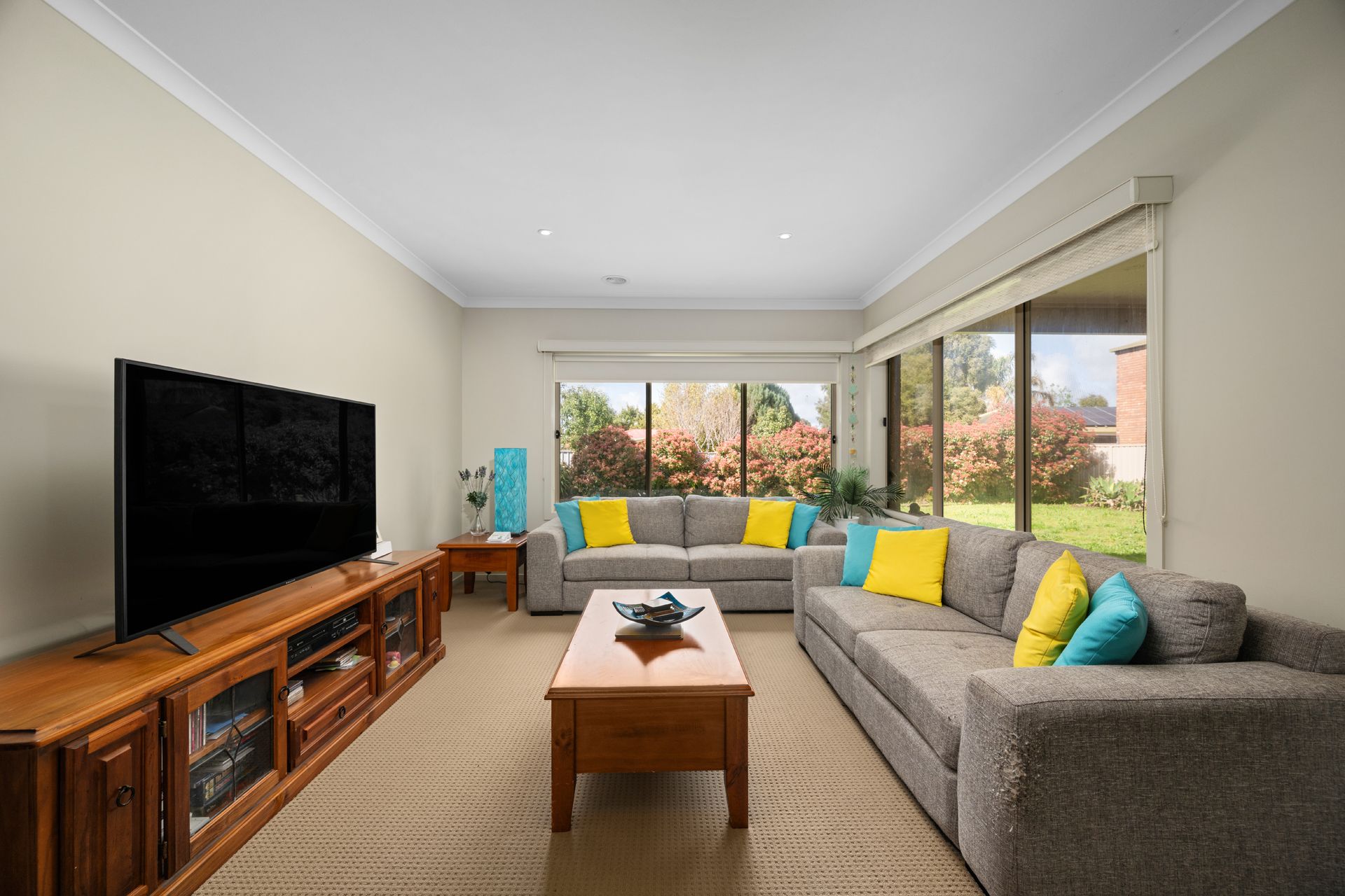 Step outside to enjoy the undercover alfresco area, complete with a ceiling fan — perfect for warm summer evenings. The low-maintenance garden features neat lawns and established shrubs along the fenceline, offering both privacy and greenery.
