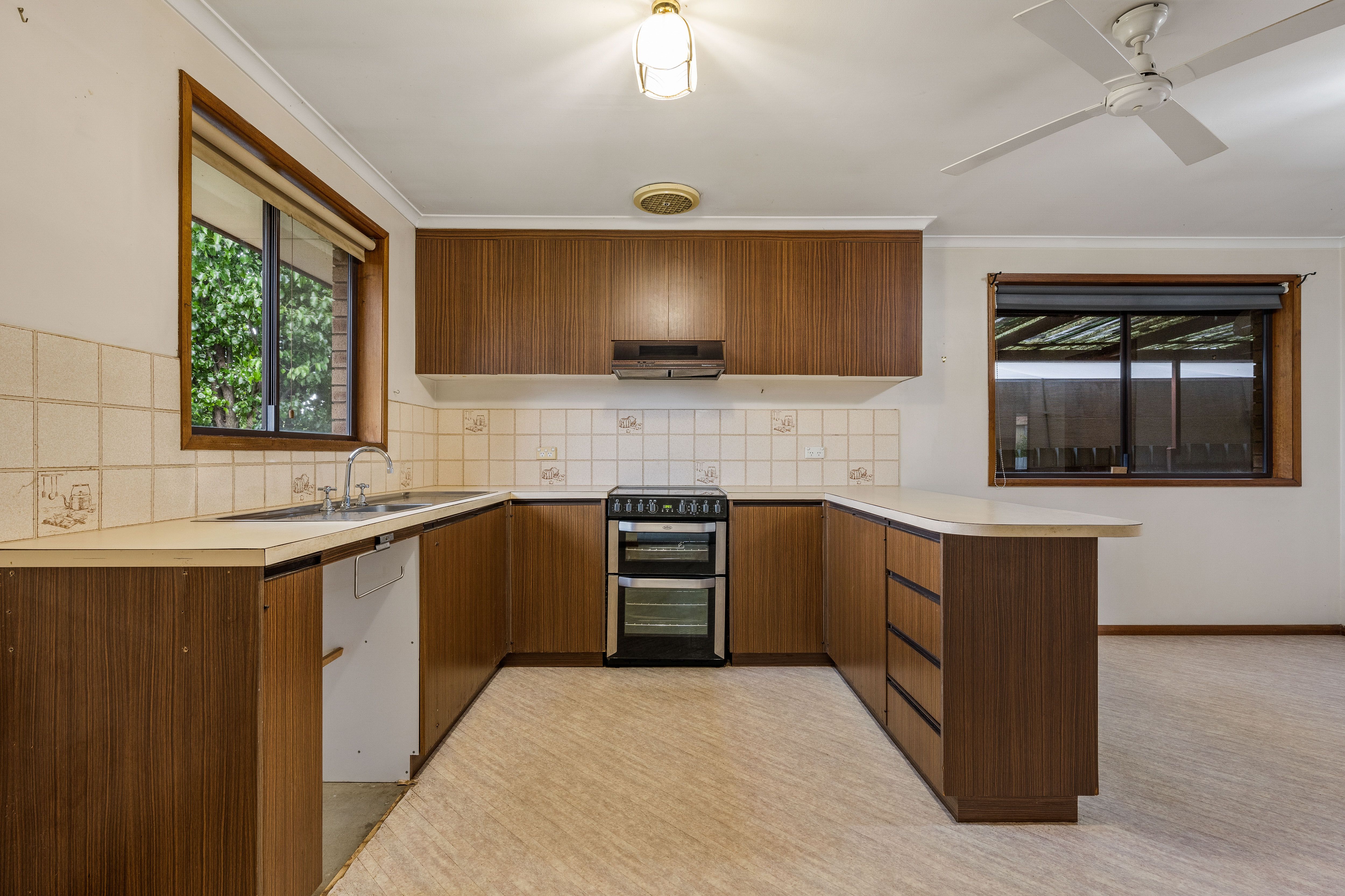 The kitchen features a Belling electric oven and cooktop, stainless steel sink plus ample of bench and storage space.