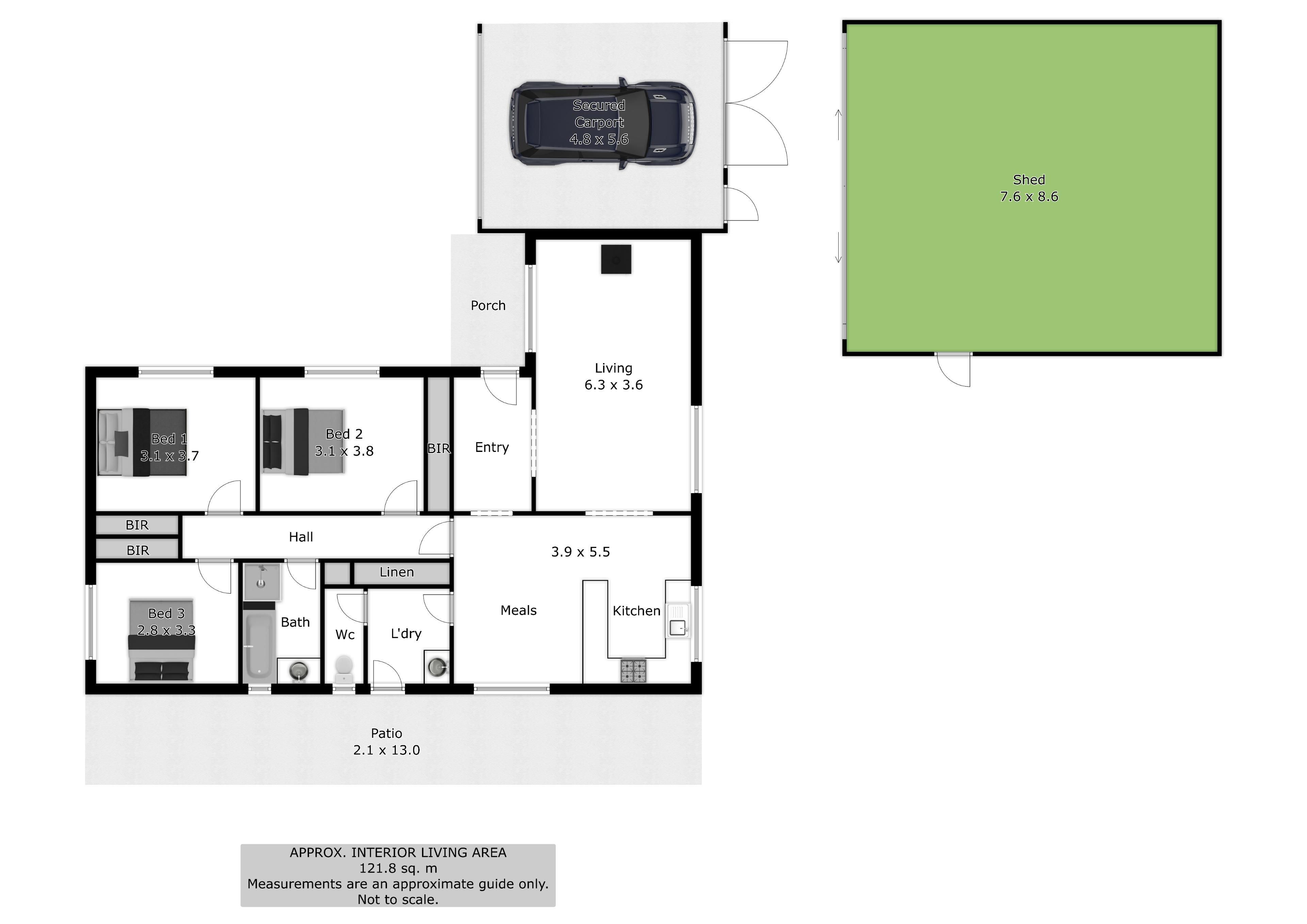 Outside, the low maintenance yard enjoys rural views of the back paddocks plus the added benefit of a 7.6m x 8.6m shed.