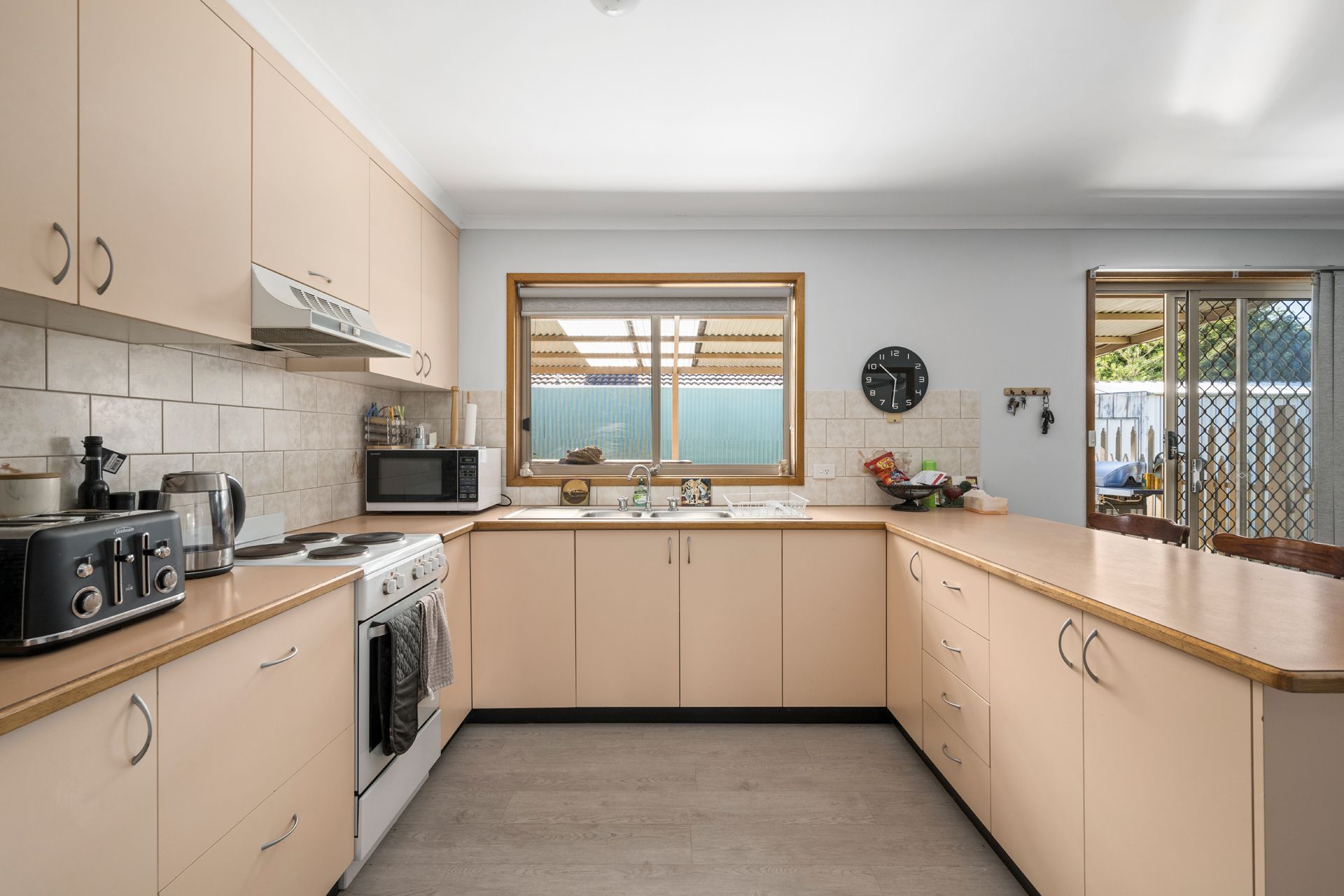 The bright kitchen boasts a double sink, breakfast bar and views of the undercover patio, as well as a meals area with easy access to the outdoors. Completing the interior, a separate laundry with a linen cupboard adds to the home's practicality.