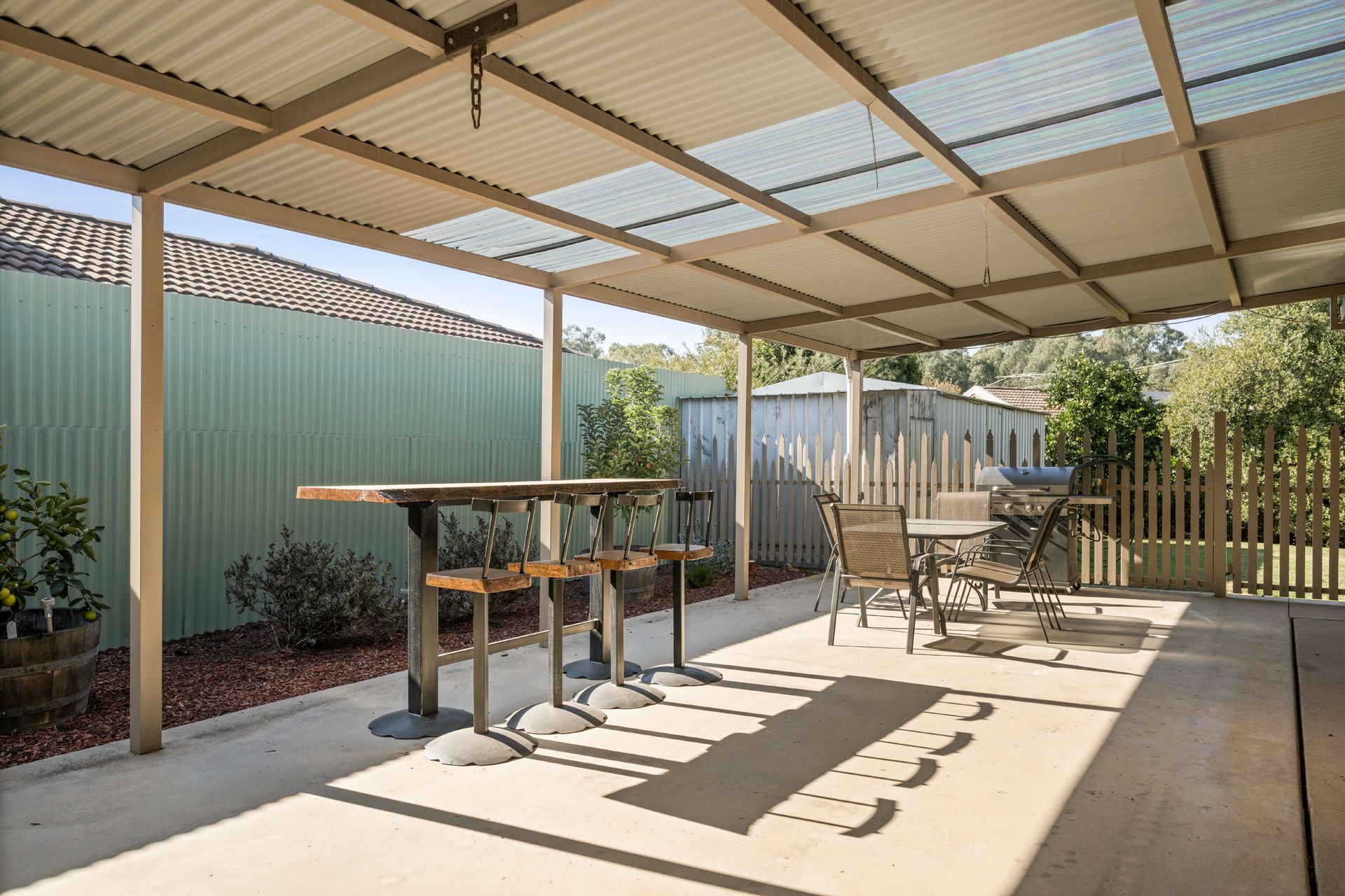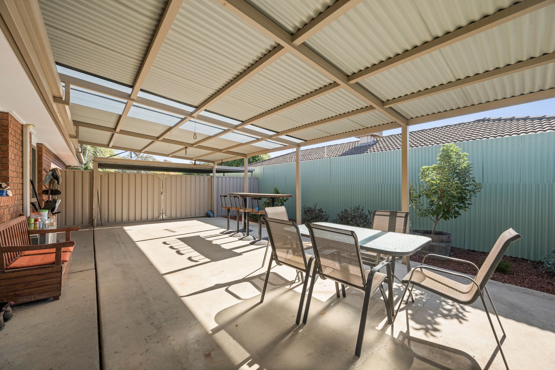 An expansive undercover alfresco area basks in the morning sun and provides a brilliant space for entertaining no matter the season. A tidy lawned area also enjoys lovely sun and the established trees along the rear fence line provide privacy. Additional features include a garden shed, clothesline and double carport that is at the front of the property.