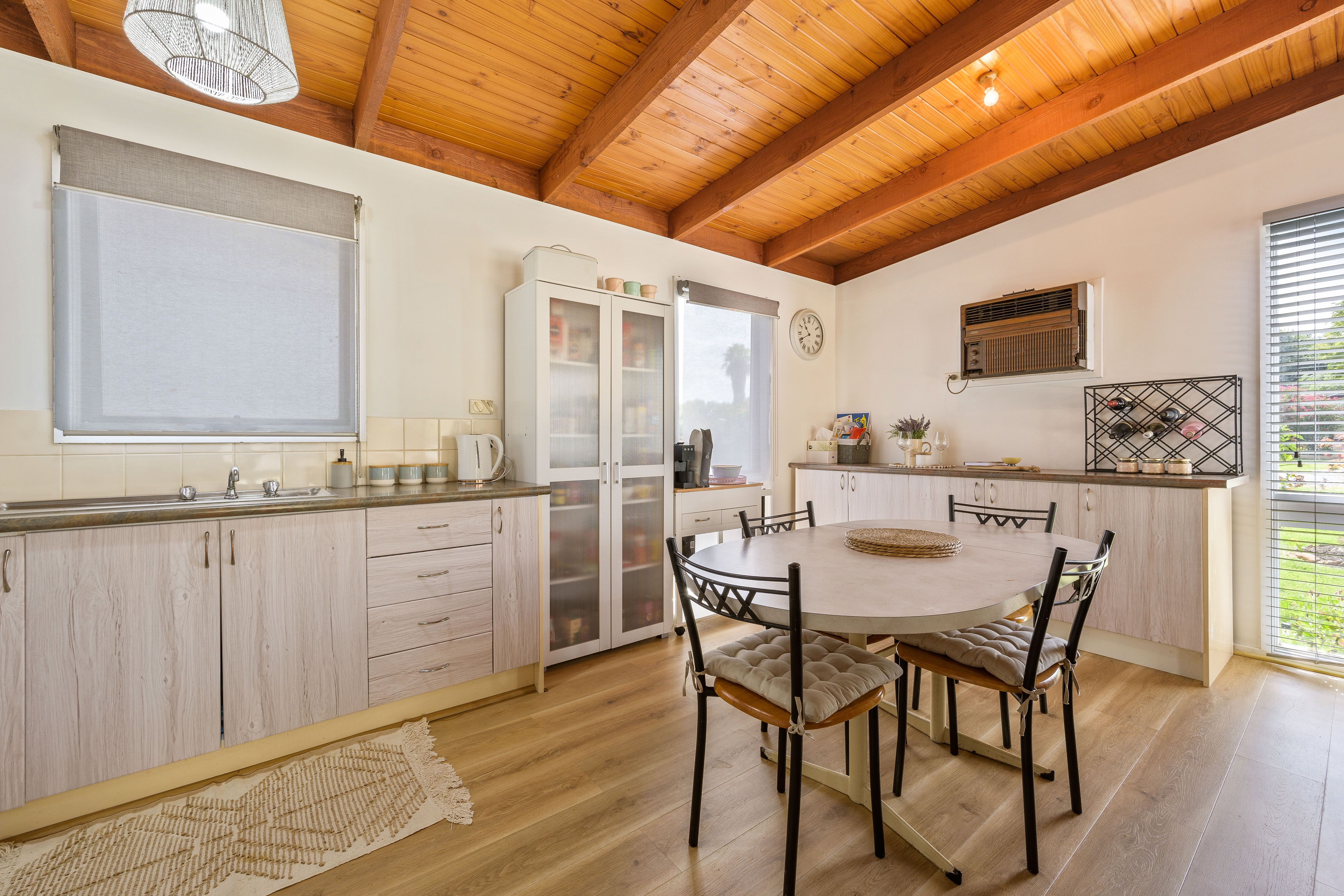 Boasting beautiful new floating floorboards, the open plan kitchen and dining area has generous storage, plenty of bench space and gas cooking.