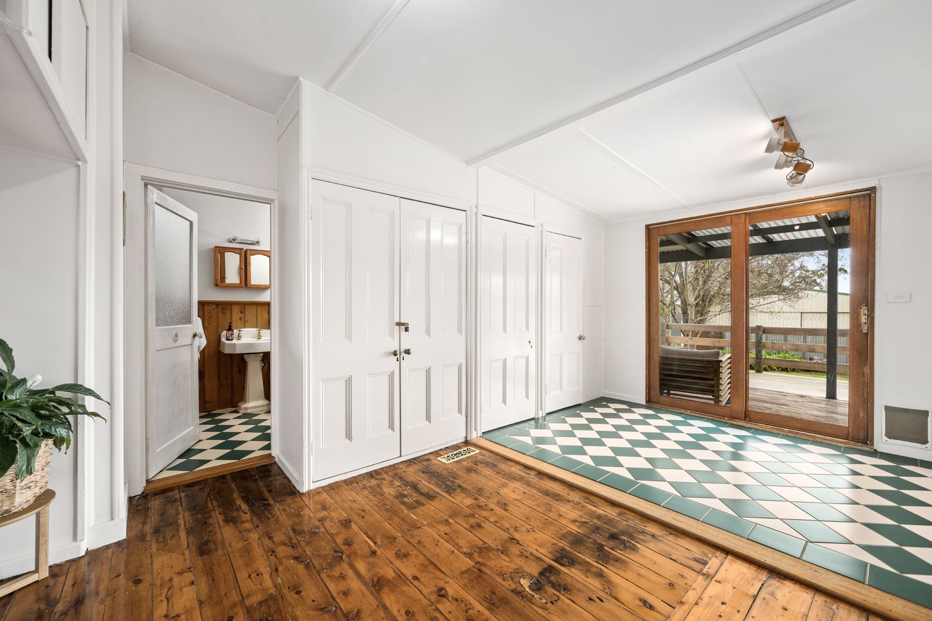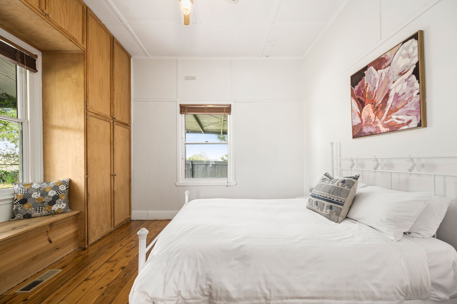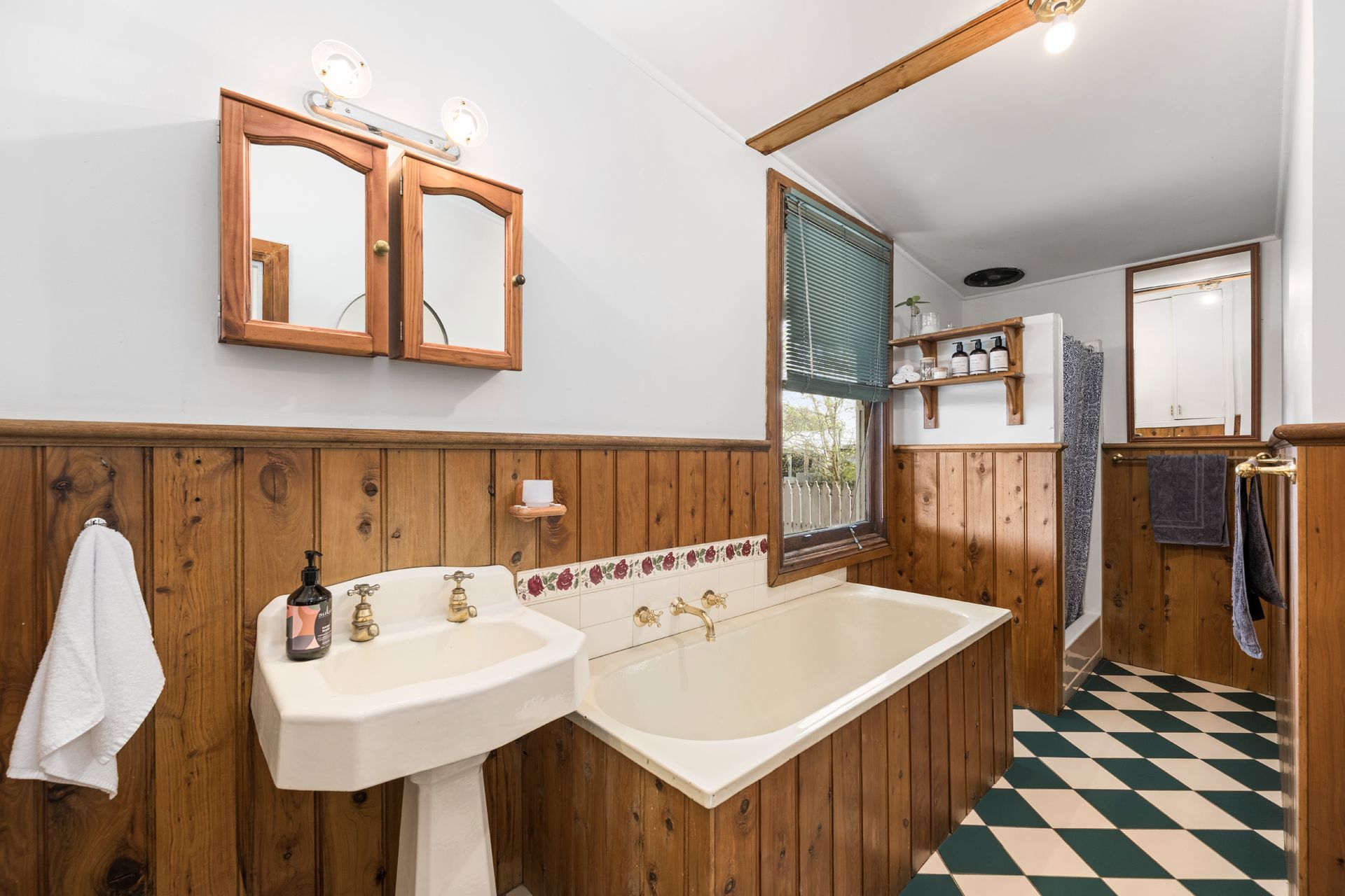 The home offers three light-filled and spacious bedrooms, with the two front bedrooms featuring original built-in cupboards and storage. The functional bathroom layout includes a bath, complemented by a vintage basin and charming tilework that enhances the home's period appeal.