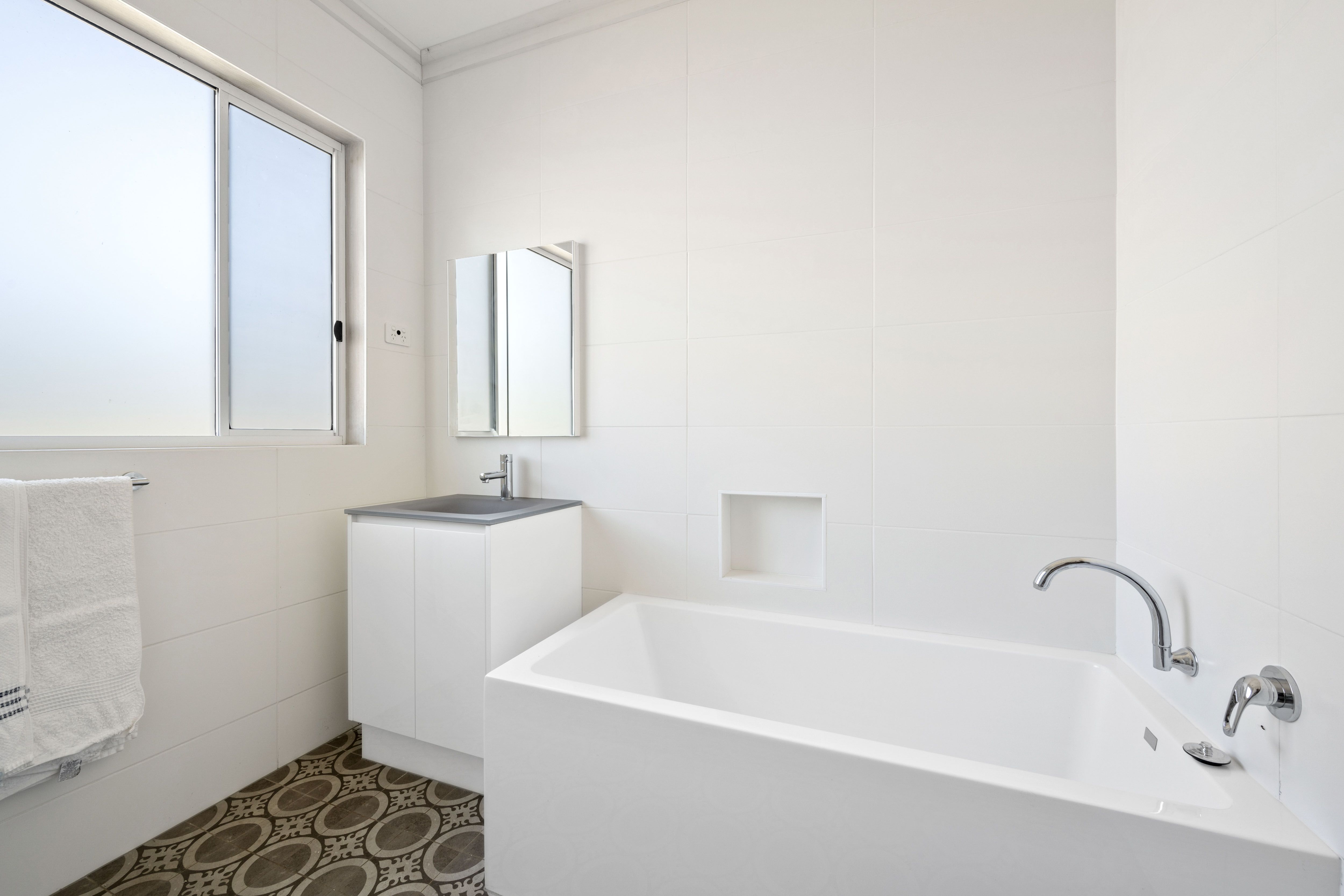 The recently renovated bathroom is a standout feature, providing a modern touch to the classic design of the house.