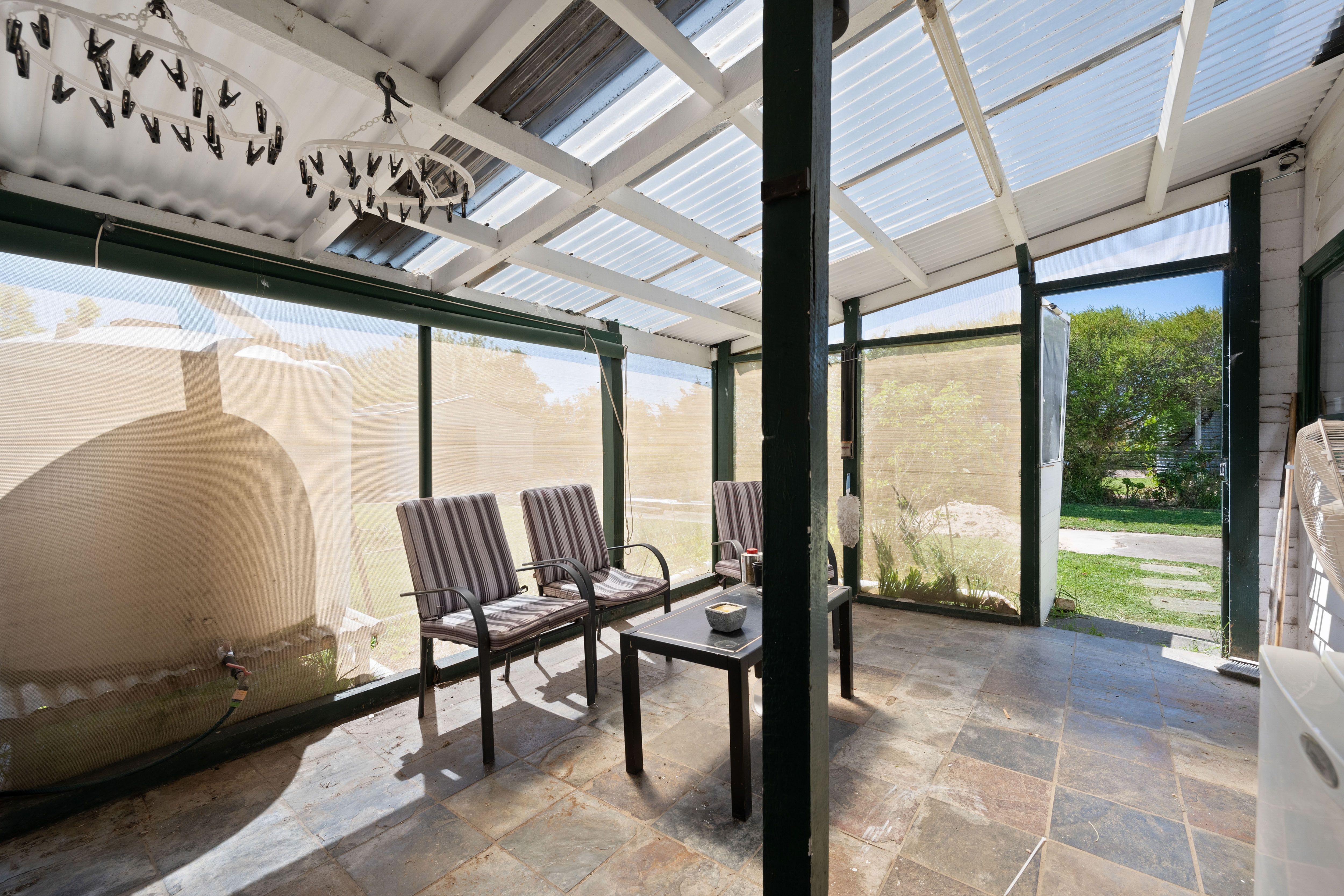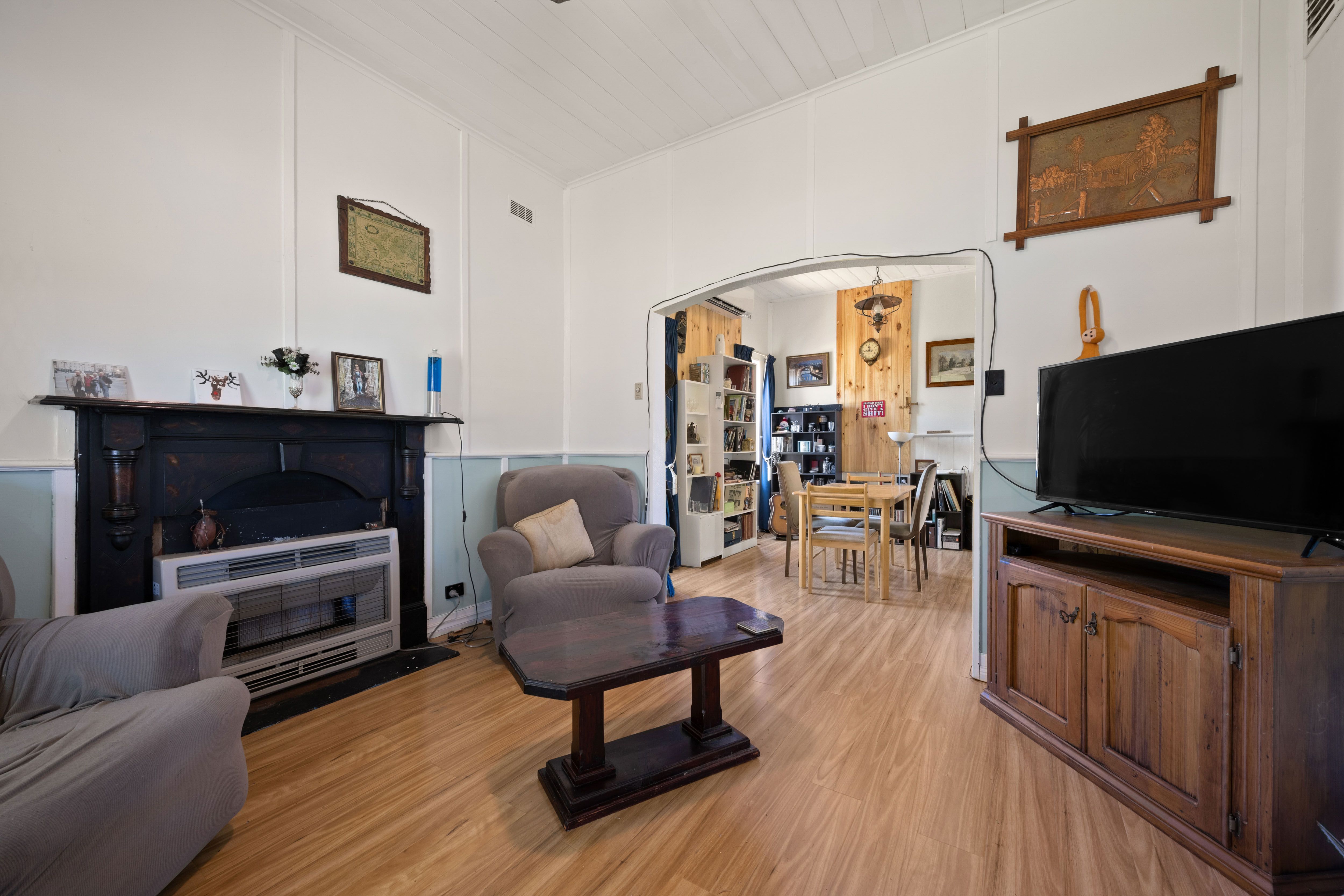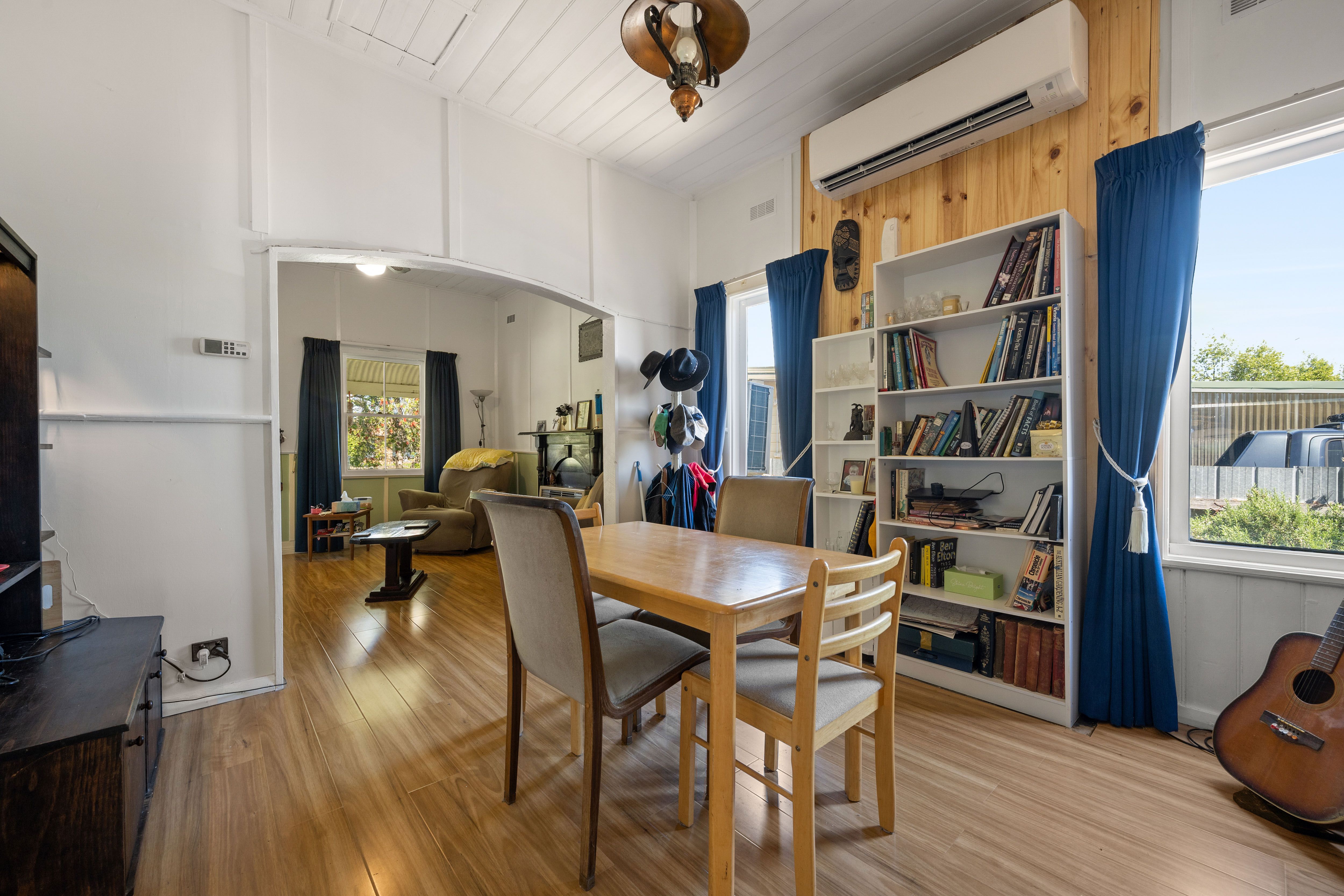 As you enter, you'll find yourself in a cosy sitting room, complete with a gas heater for those chilly evenings. The dining area awaits, bathed in natural light streaming through large windows.