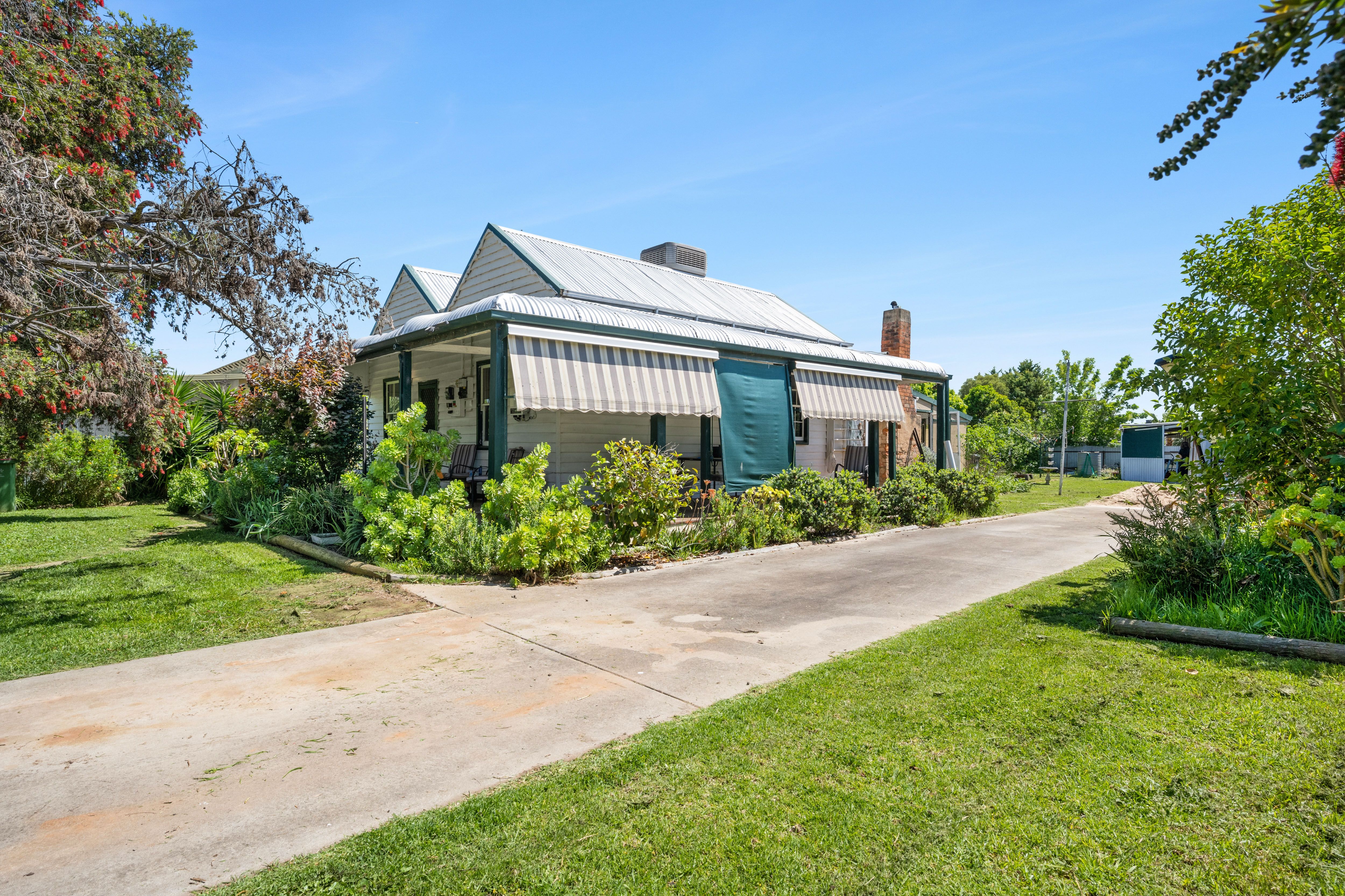 This lovely two bedroom residence in the heart of Wahgunyah welcomes you with a pretty front garden and a verandah that wraps around the side of the home.