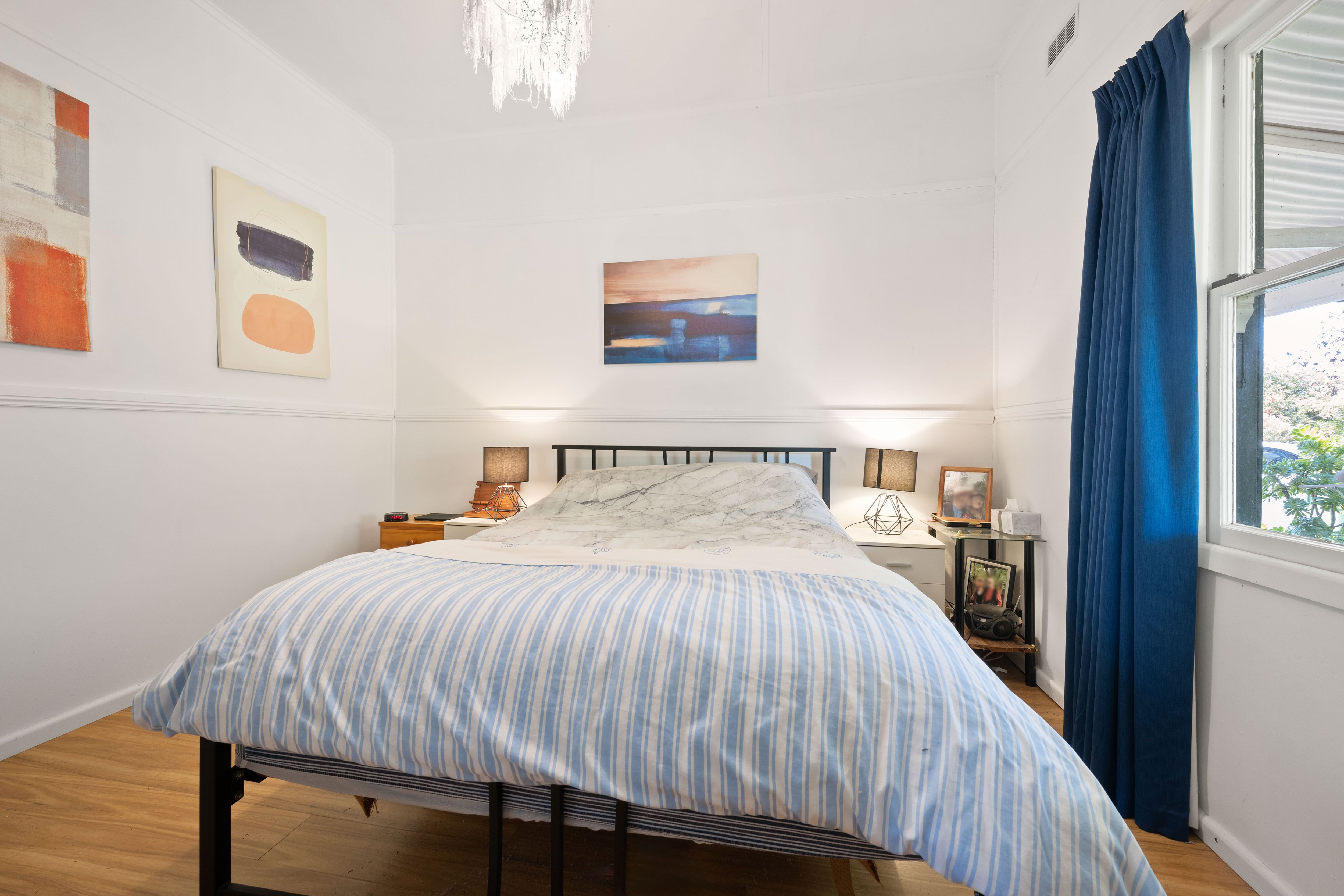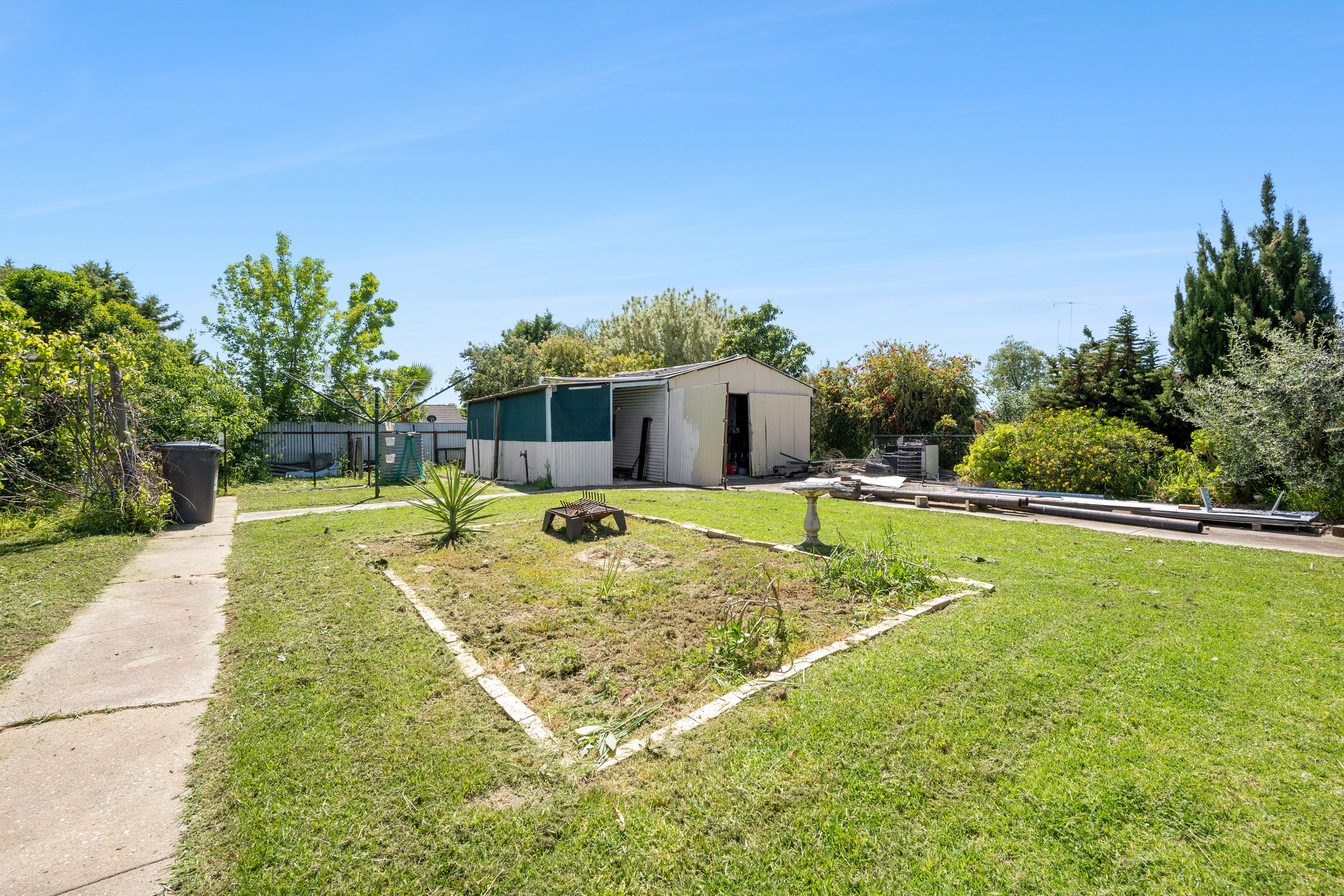 The spacious backyard offers a perfect blend of grassy areas and well-tended garden beds. It even boasts a large raised timber veggie bed, perfect for cultivating your own fresh produce. A driveway to the side of the house leads down to a two car garage that can easily double as a workshop.