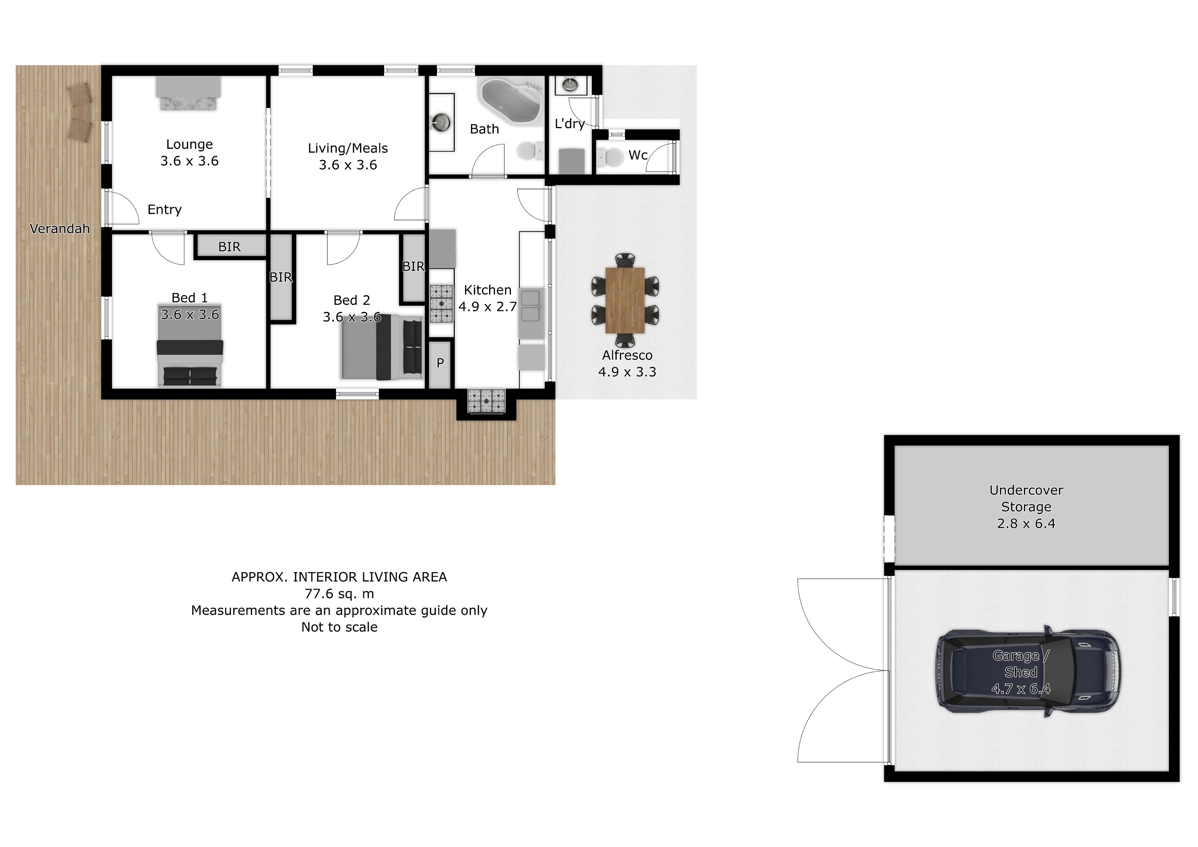 Both bedrooms are well sized and boast built in robes, along with garden outlooks. The main bathroom features a large corner bath.