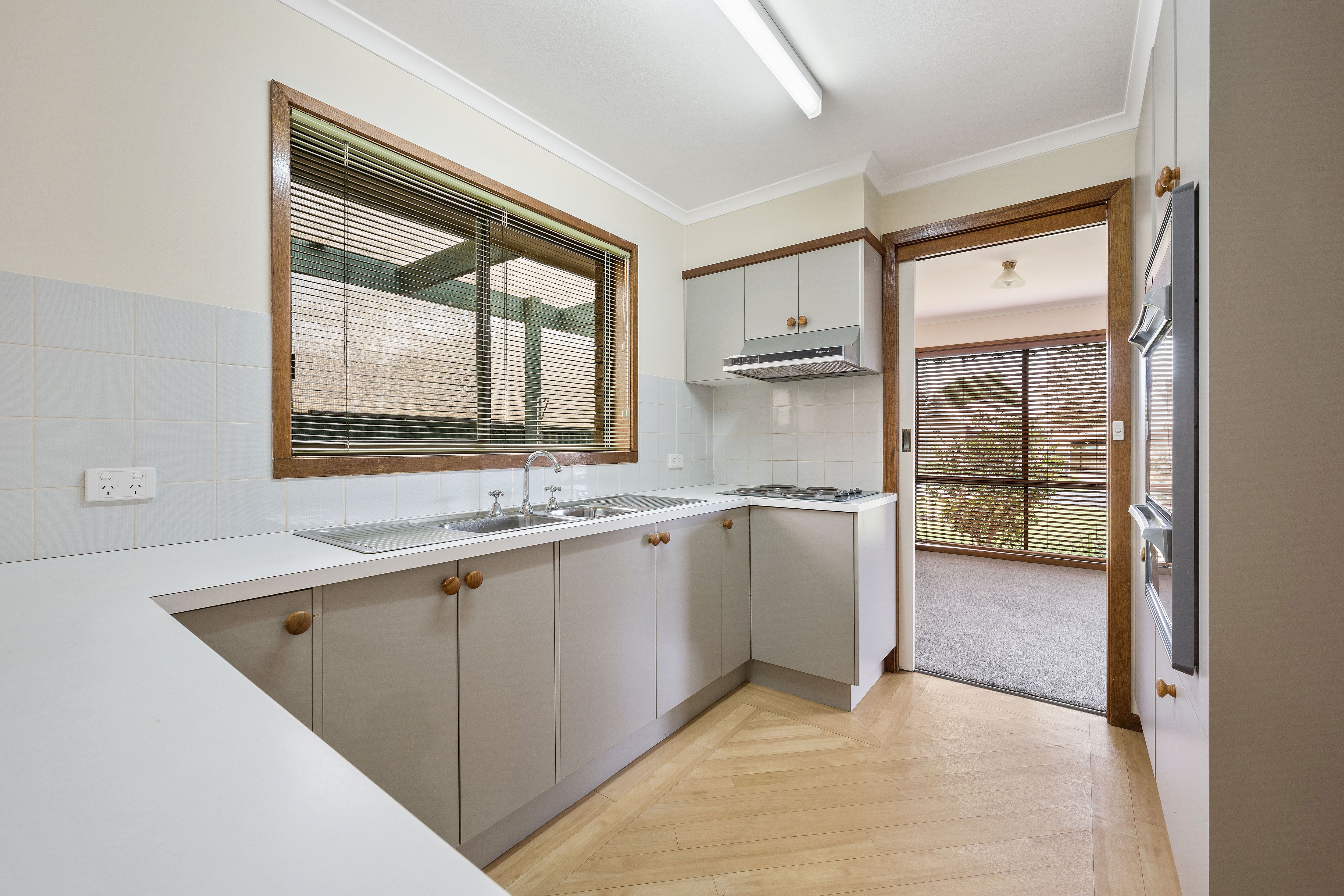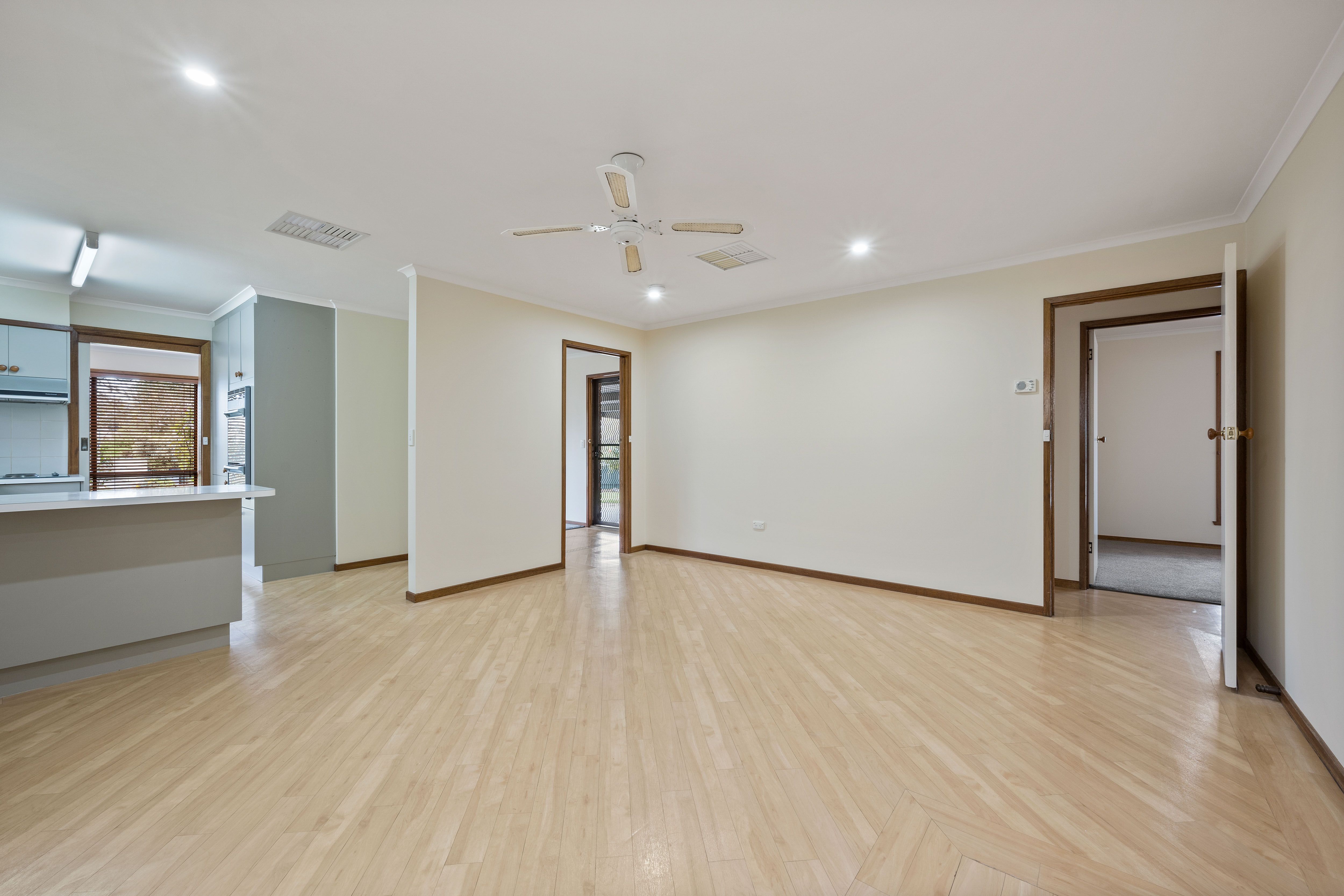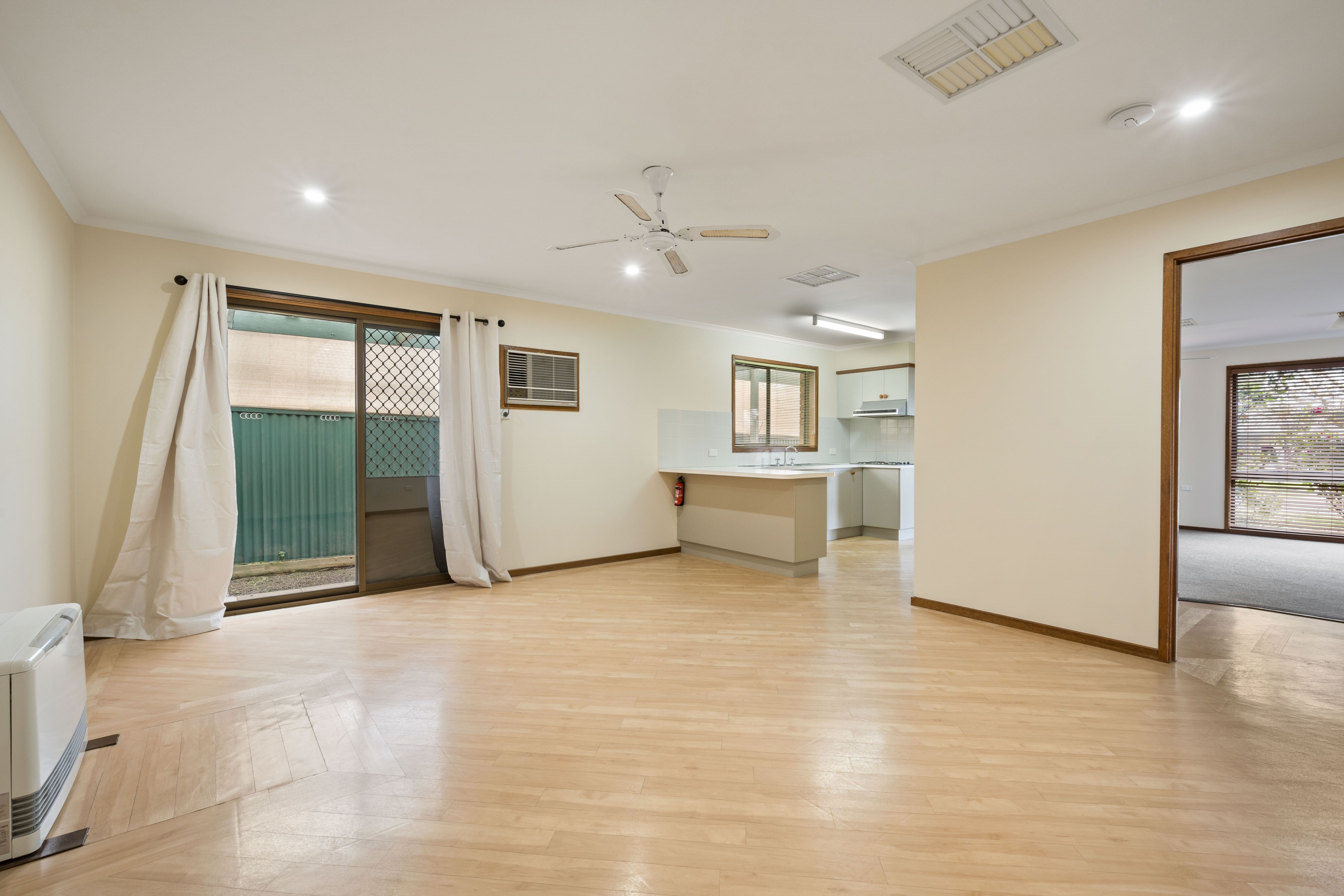 The meals area is perfect for sharing quality time with your loved ones, equipped with a ceiling fan and wall heater for your comfort. The open plan kitchen is fitted with Westinghouse appliances and a double sink.