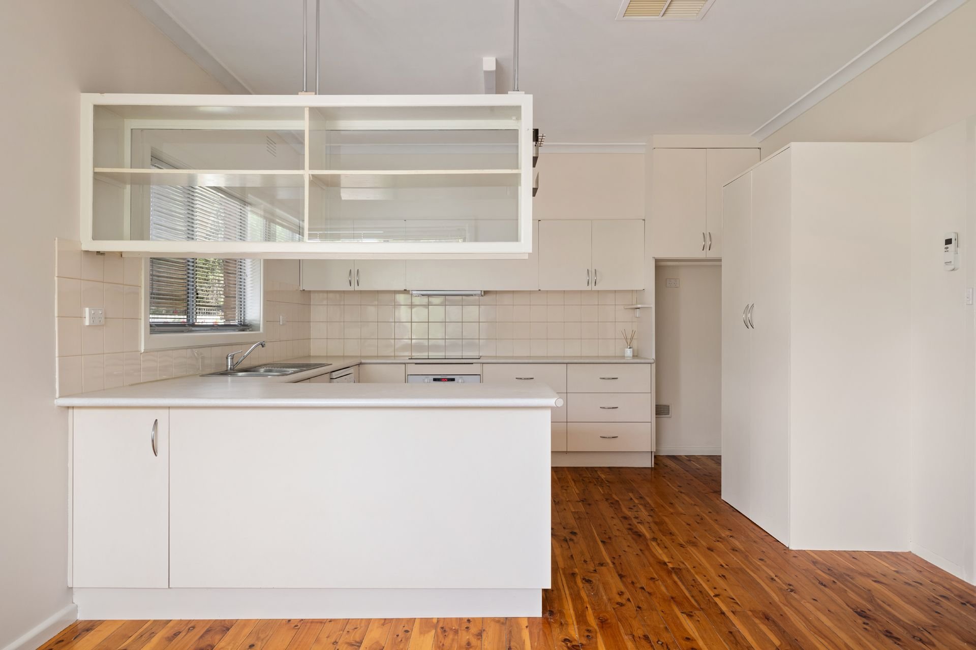 Step inside to a light-filled living room with large windows and timeless floorboards, creating a warm and inviting atmosphere. The adjoining dining area flows seamlessly into a spacious kitchen, complete with abundant bench space, ample storage, and plenty of room to move and entertain. Evaporative air conditioning ensures comfort throughout the year.